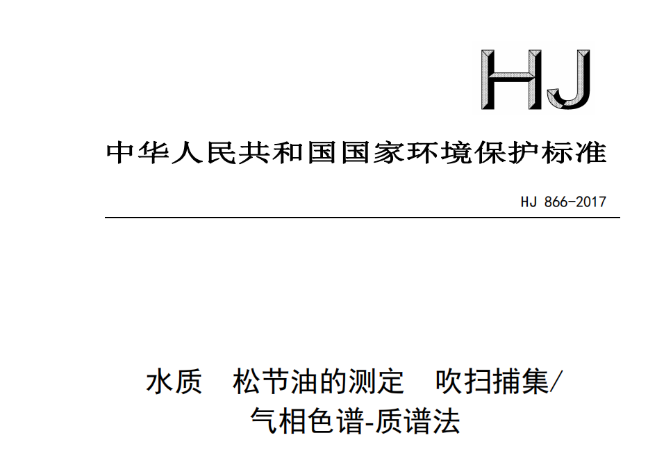 HJ 866-2017 水質(zhì) 松節(jié)油的測定 吹掃捕集-氣相色譜-質(zhì)譜法(發(fā)布稿) 本標準規(guī)定了測定水中松節(jié)油的吹掃捕集 /氣相色譜 -質(zhì)譜法。 本標準適用于地表水、地下水、生活污水和... 更新日期:2020-04-01 下載包(1)