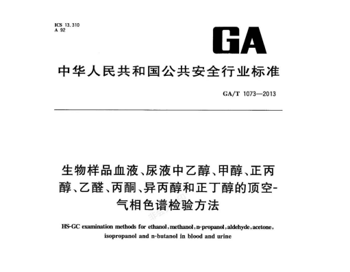 GA/T842-2009公安部血液中的酒精檢測標準 本標準規(guī)定了血液酒精含量的頂空氣相色譜檢驗方法。 本標準適用于道路交通執(zhí)法活動中對人員血液中酒精(以... 更新日期:2020-01-08 下載包(1)