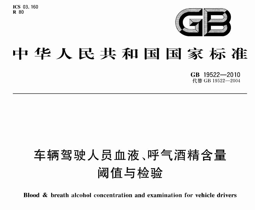 GB 19522-2010 車輛駕駛?cè)藛T血液、呼氣酒精含量閾值與檢驗 中華人民共和國國家標準——車輛駕駛?cè)藛T血液、呼氣酒精含量閾值與檢驗標準(由國家公安部提出,國家質(zhì)量監(jiān)... 更新日期:2020-05-09 下載包(1)